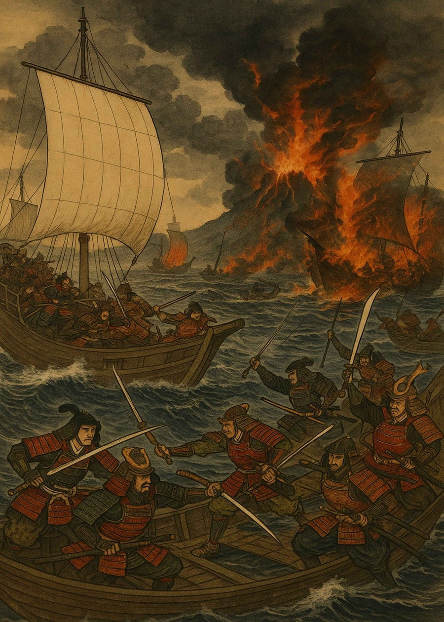 A fierce naval clash erupts off the coast of 17th century Japan.