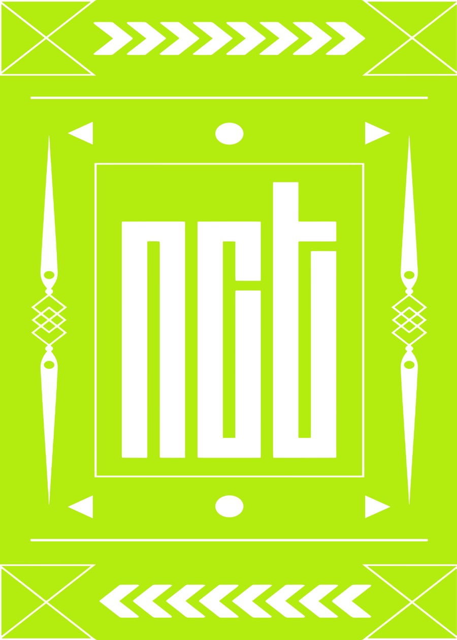The NCT logo with traditional ethnic patterns in a vibrant lime green color scheme.