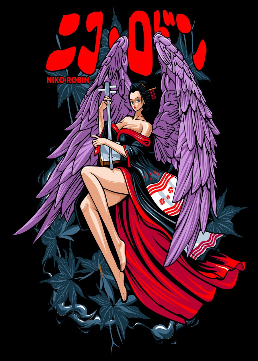 Nico Robin spreads her wings in this elegant One Piece artwork with striking purple tones.