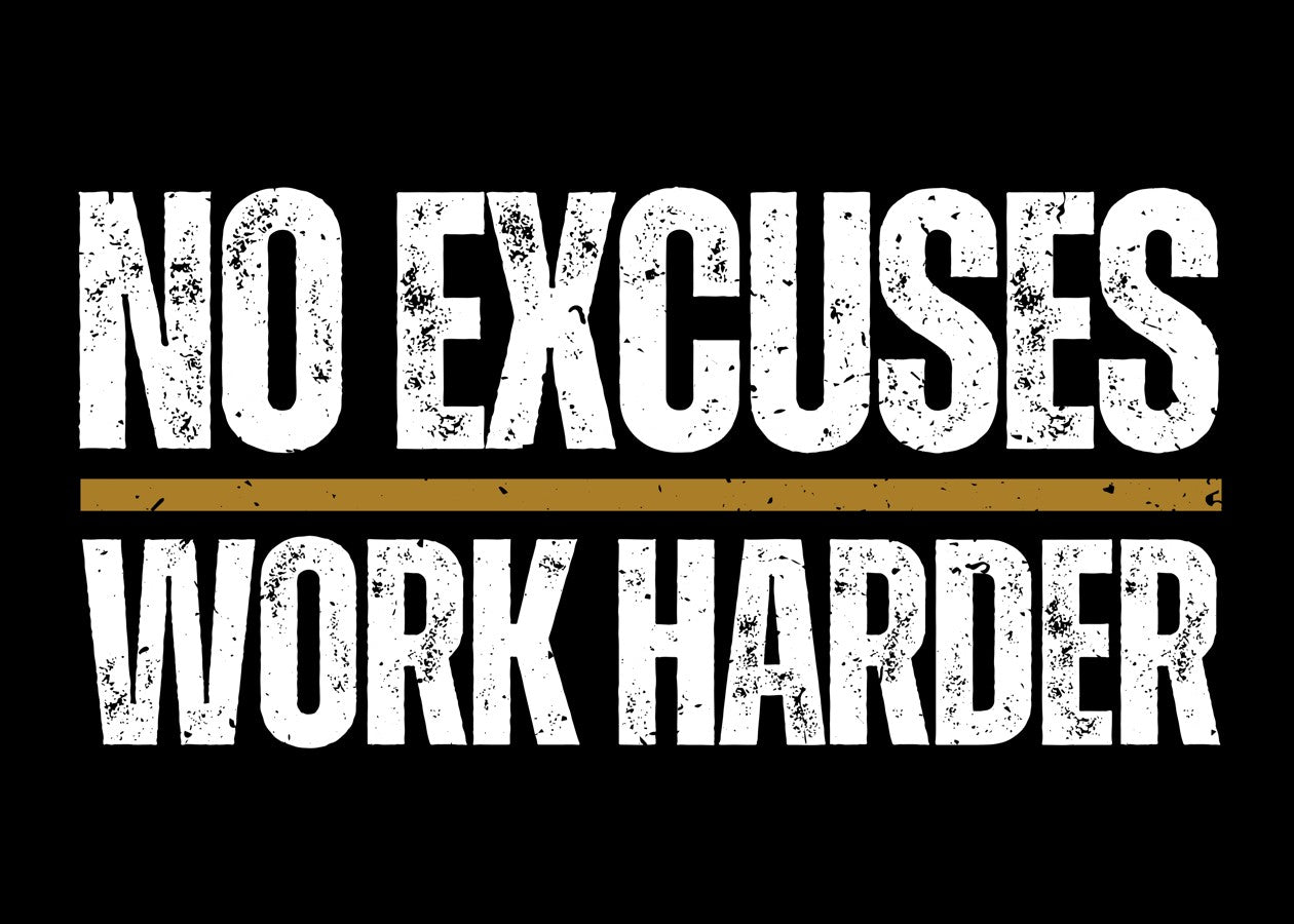 No Excuses Work Harder - Perfect for the gym, office, or any space that needs an extra push to fuel your goals.
