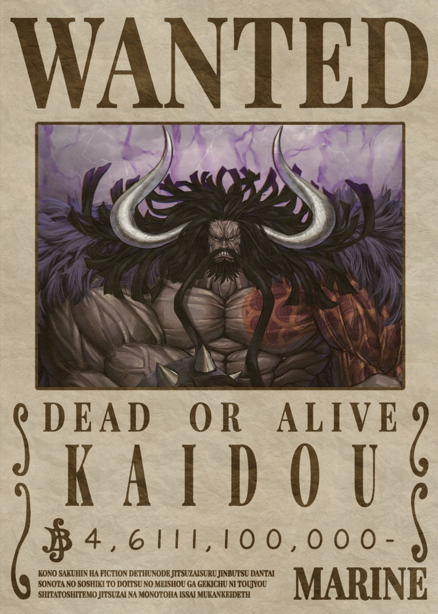 Illustration of a bounty hunter poster from the anime series One Piece. Featuring Kaidou.