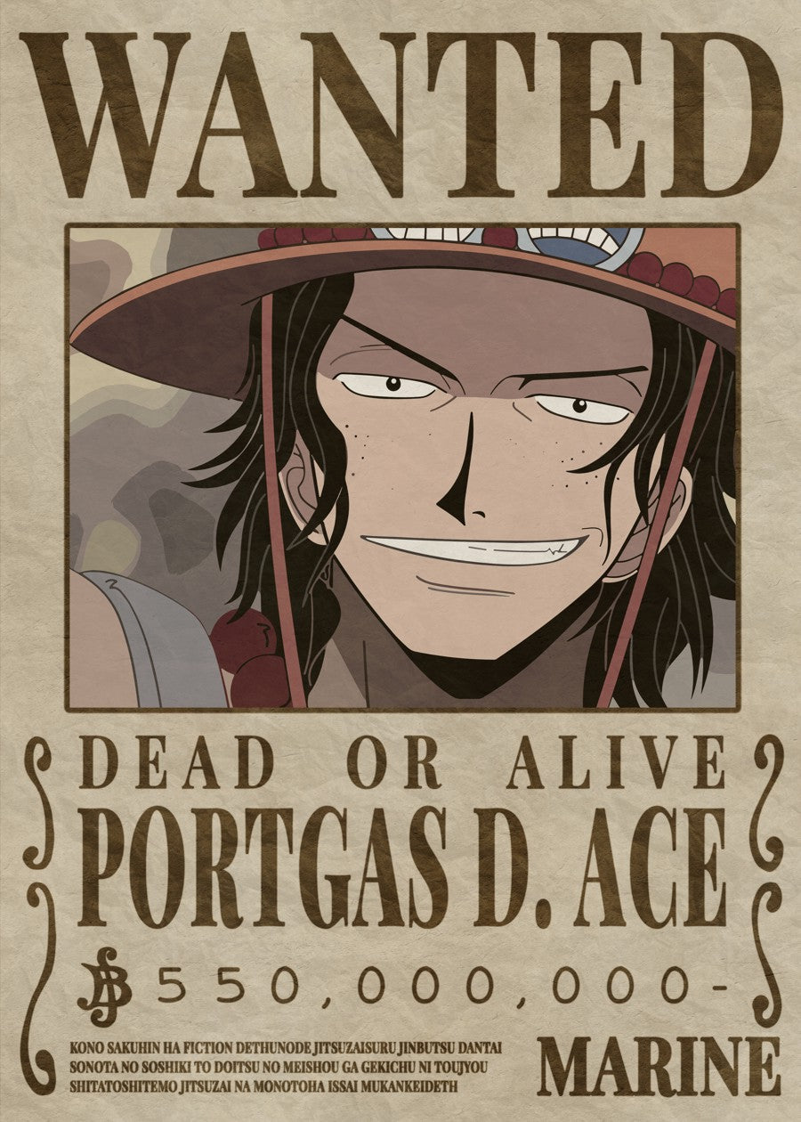Design with bounty hunter poster style from famous anime One Piece. With Portgas D Ace character