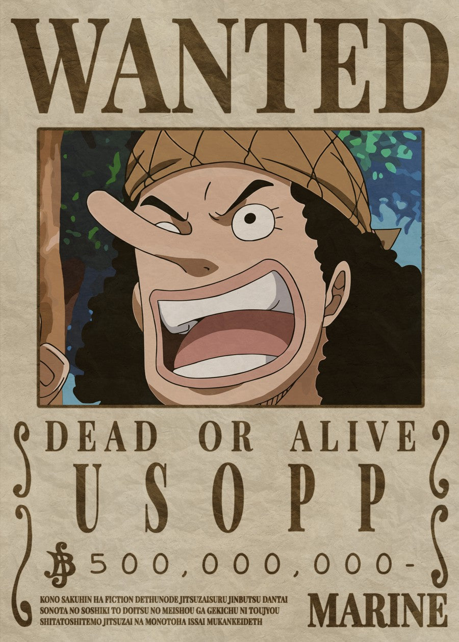 Design with bounty hunter poster style from the famous anime One Piece. With Usopp character