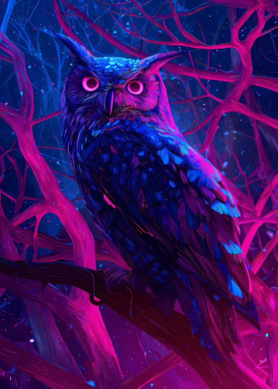 Owl Fantasy Horror Neon