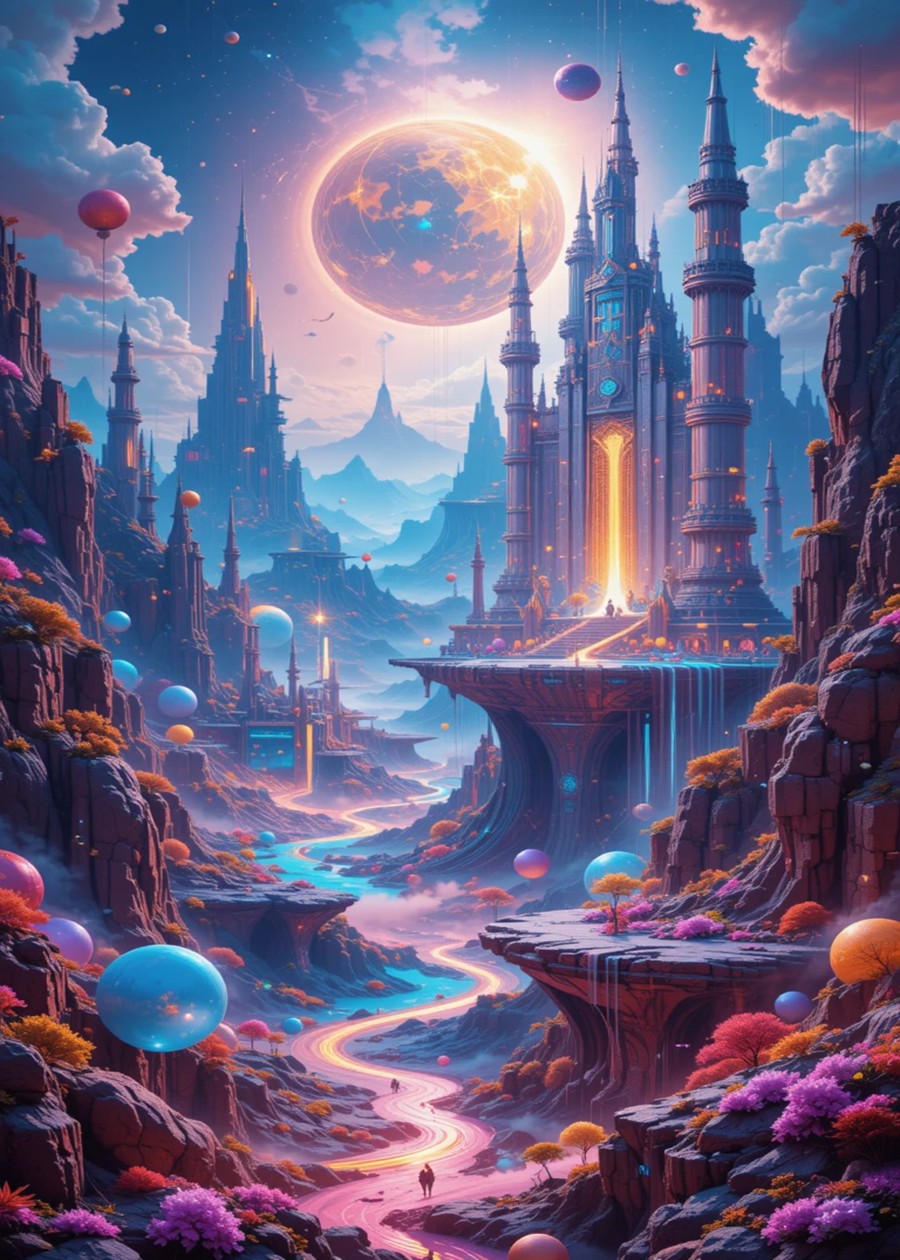 A mystical artwork depicting the radiant journey of a luminous pilgrim, symbolizing spiritual awakening, divine guidance, and the eternal .