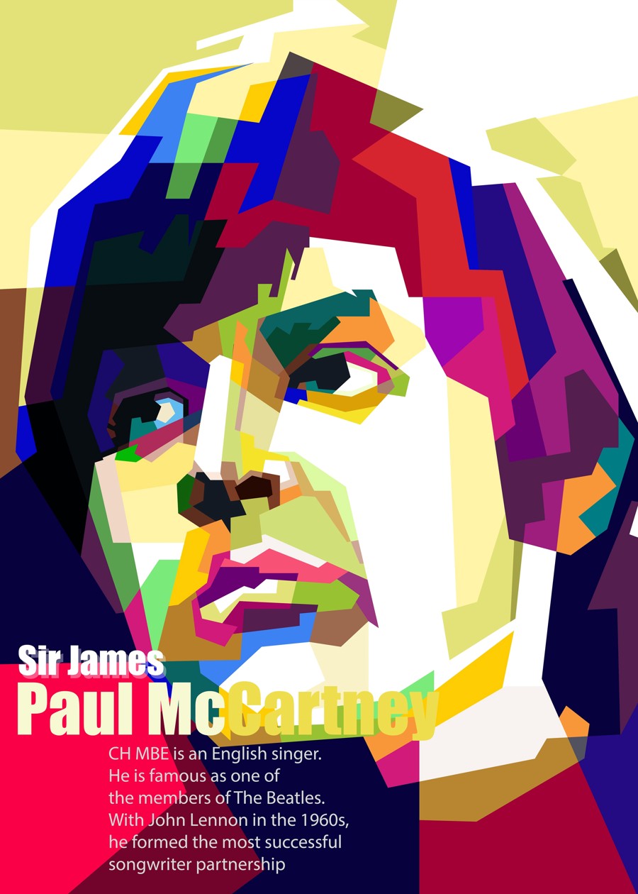 Paul McCartney art WPAP is an English singer, songwriter and musician who gained worldwide fame with the Beatles, for whom he played bass.