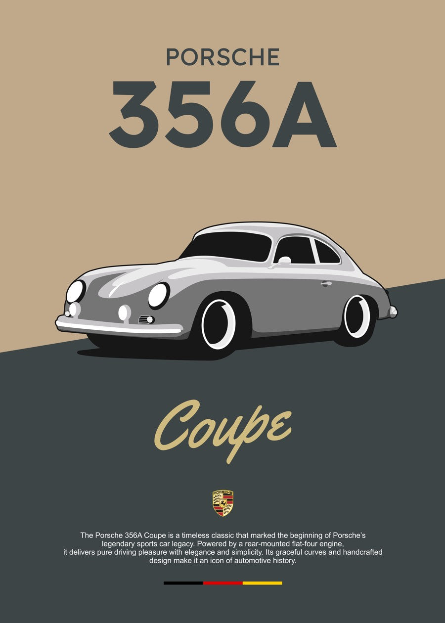 The Porsche 356A Coupe with smooth design and elegant character, an early Porsche icon blending timeless style and refined performance.