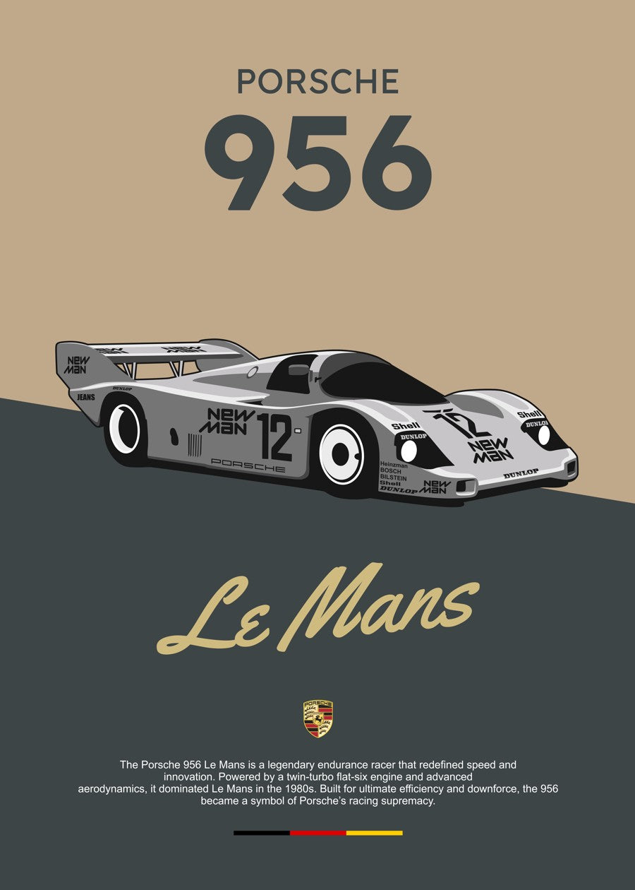The Porsche 956 Le Mans, a legendary race car with advanced aerodynamics and incredible speed, dominating endurance racing in the 80s.