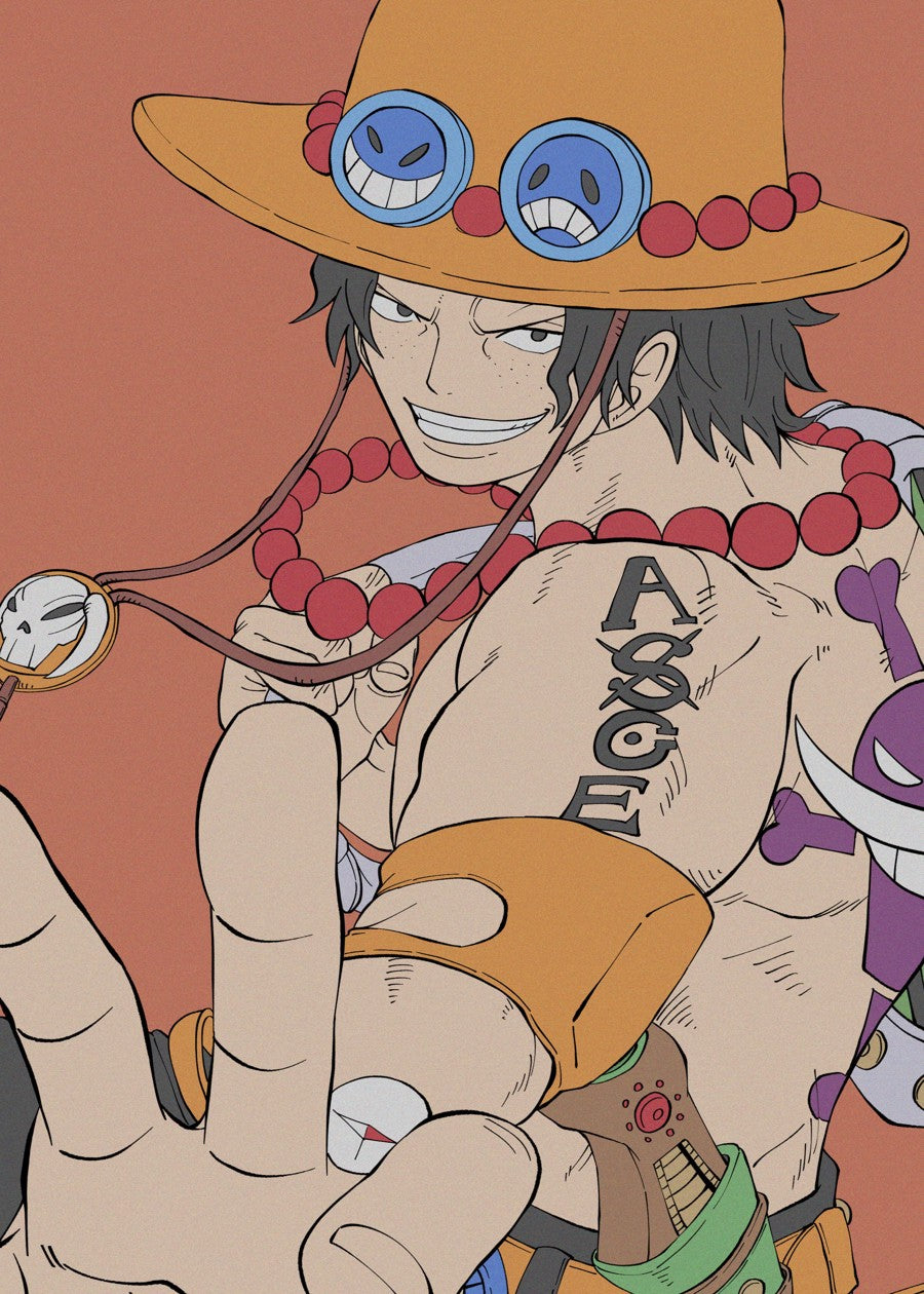 Ace was a tall muscular young man with jaw-length curly black hair. Although they were not blood related, Ace looked remarkably like his foster brother, Luffy.