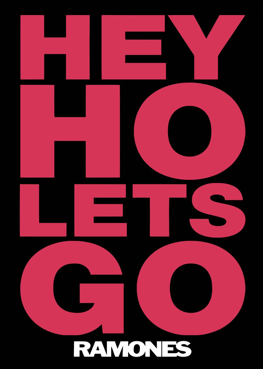 This minimal, punchy design uses huge, stacked red letters for “HEY HO LETS GO,” the iconic chant from Ramones’ “Blitzkrieg Bop.”