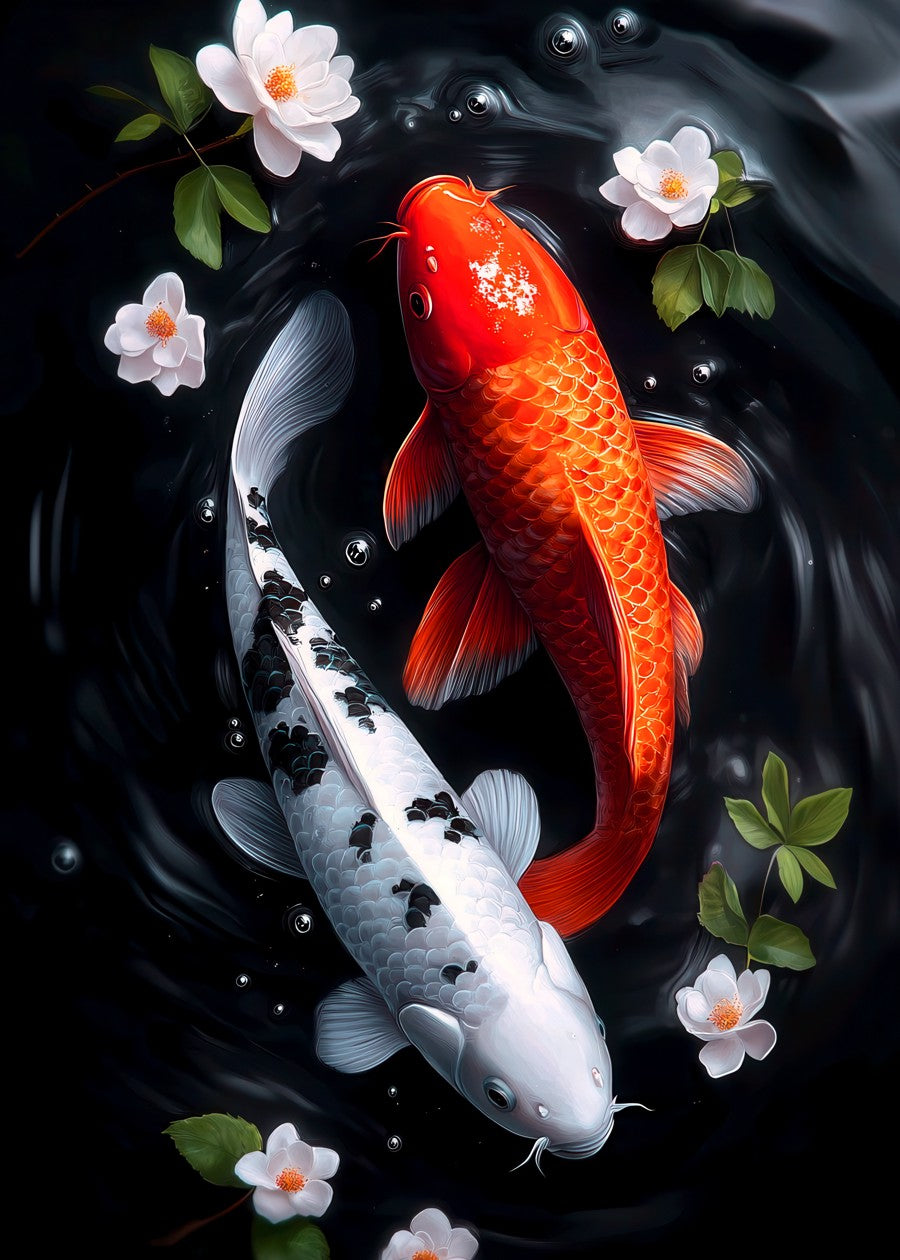 water, koi, red and white koi