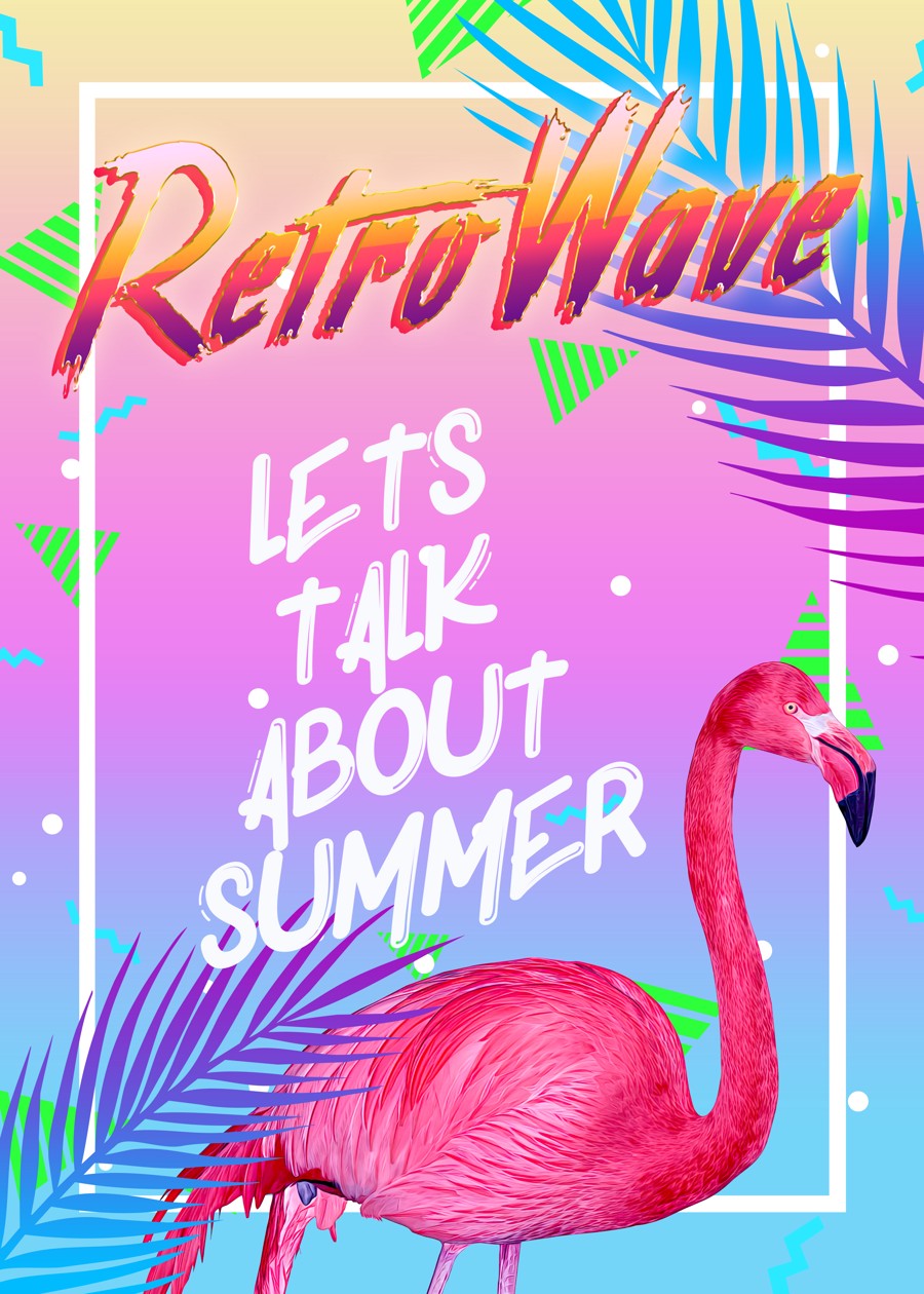 Retrowave: Summer and flamingo