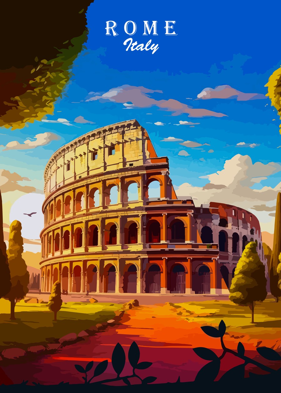 an illustration of a view of the city of Rome, Italy