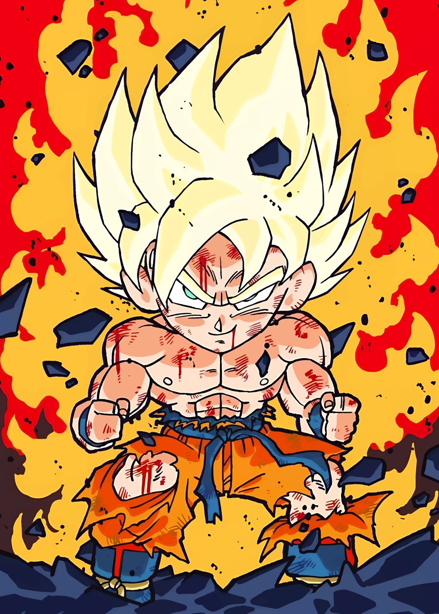 Goku stands tall, aura blazing, embodying the fearless spirit of a Saiyan warrior ready to push past every limit.