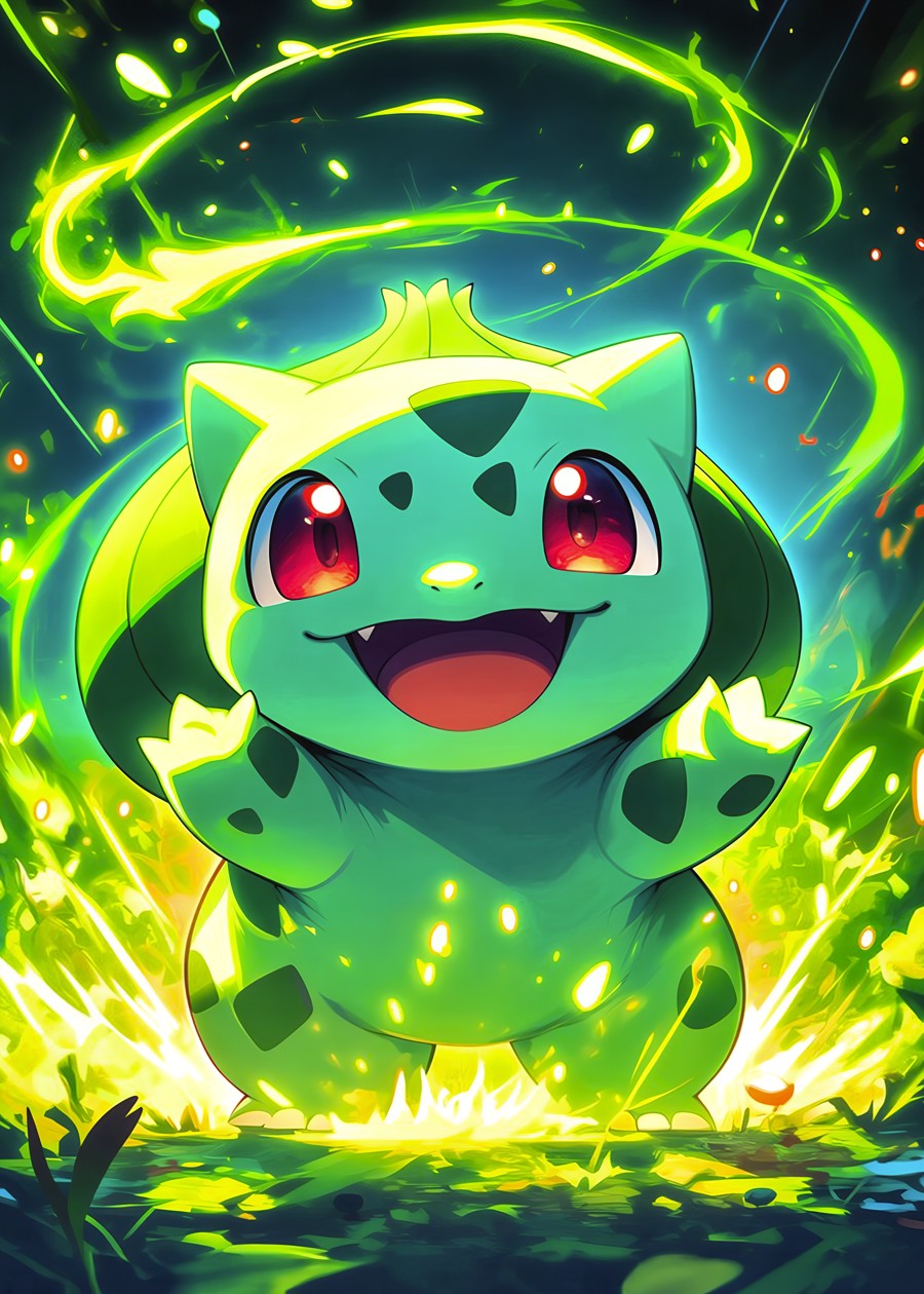 With the bud on its back glowing with life, Bulbasaur radiates nature’s strength, ready to grow alongside its trainer.