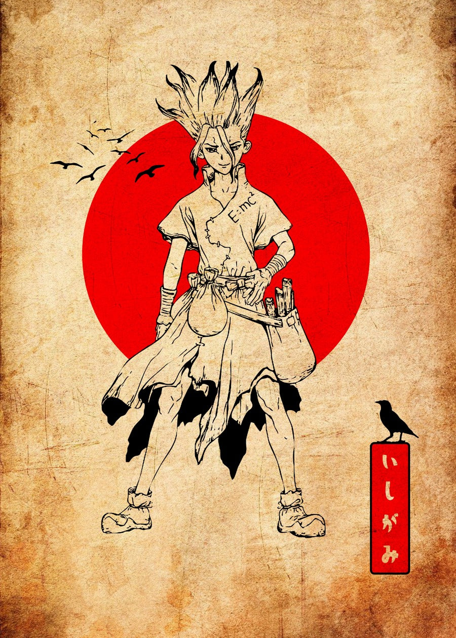 Senku Ishigami is the protagonist from Riichiro Inagaki and Boichi's manga series Dr. Stone. Beginning in April 5738 AD, it has been over 3,700 years since a mysterious flash petrified nearly all human life.