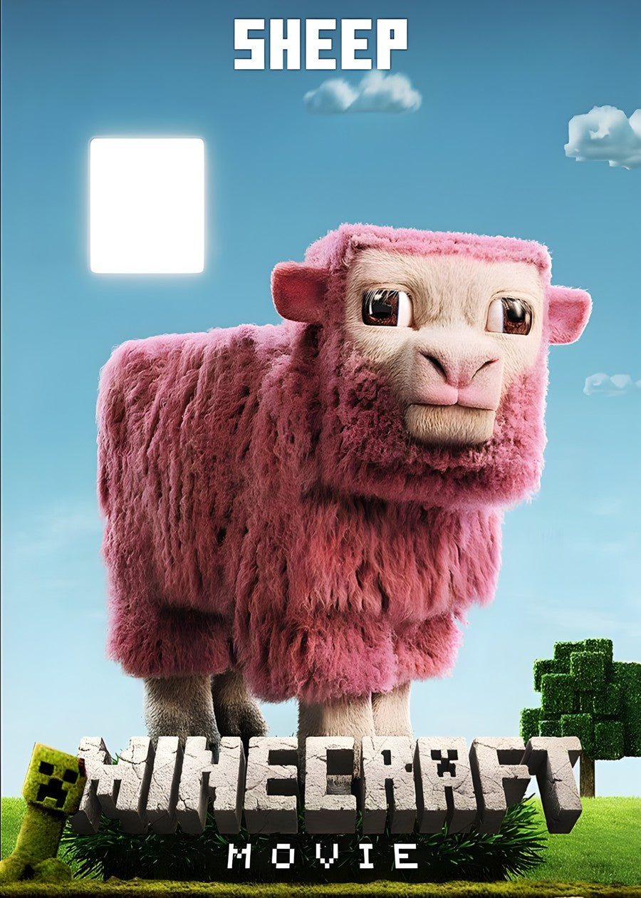 A charming pink sheep, rendered with fluffy textures, standing against the familiar Minecraft landscape.