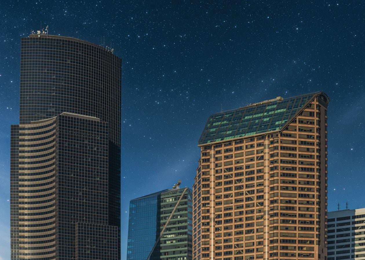 Check out this cool Starry nightscape photographed in Seattle Washington by Louis Ruth Photography. The vibrant skyscrapers contrast sharply.