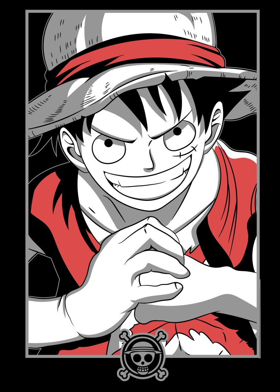 Energetic Luffy artwork in bold red and black—perfect for fans of the future Pirate King.