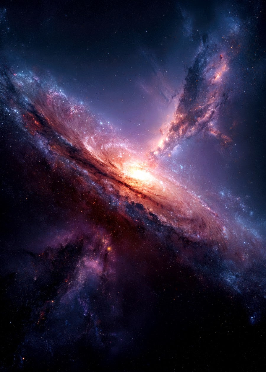 Swirling Galaxies Dance in Cosmic Colors Above a Vibrant Cosmic Horizon