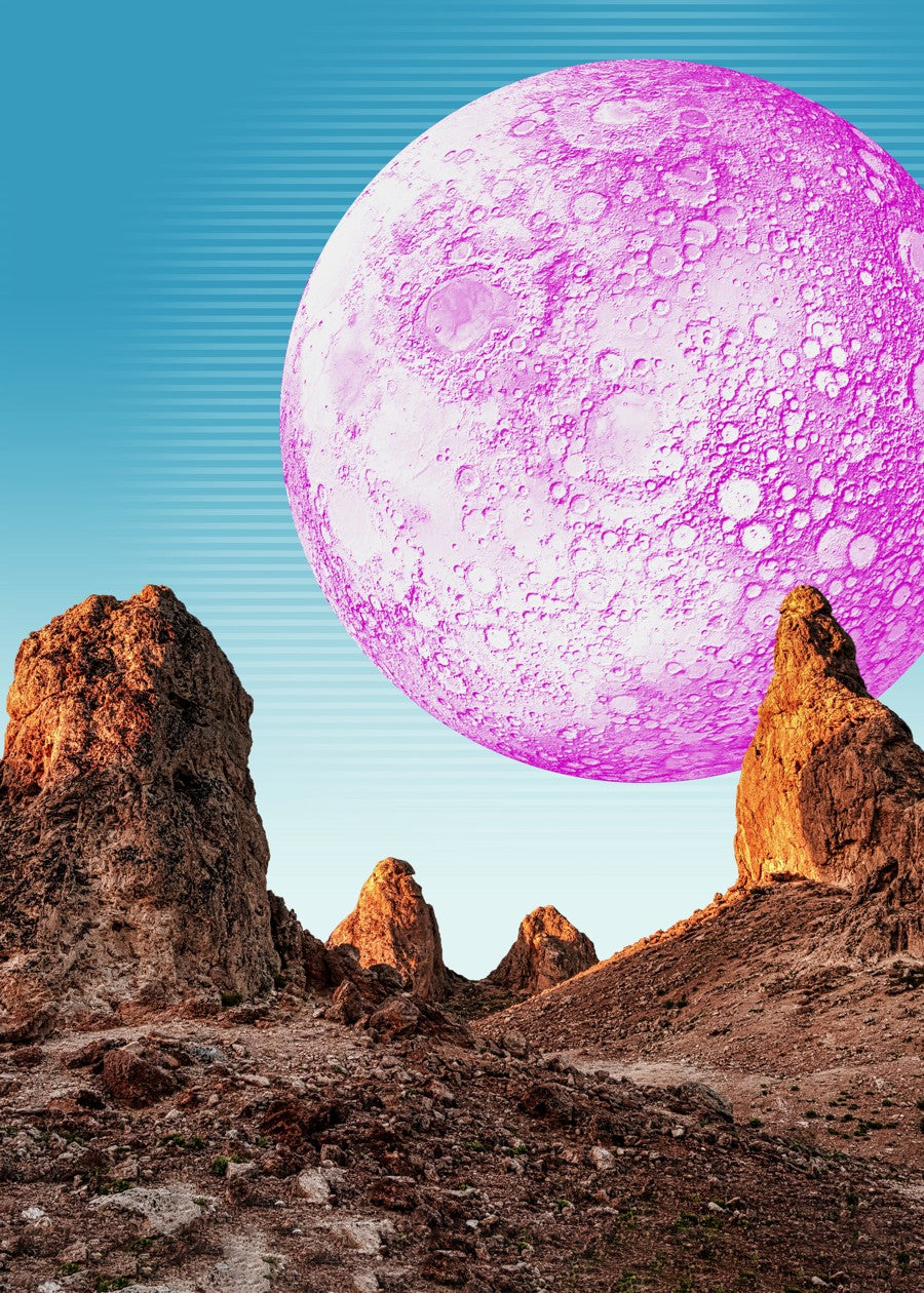 Synthwave Moon & mountain. Grand Canyon