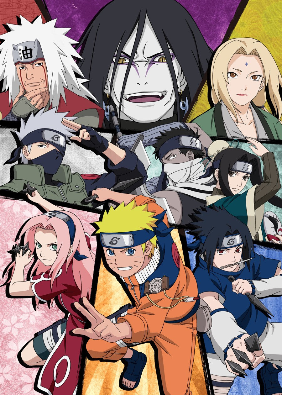 Naruto Uzumaki, in his Shippuden attire, is depicted reaching out, with Sakura Haruno and Kakashi Hatake in the background.