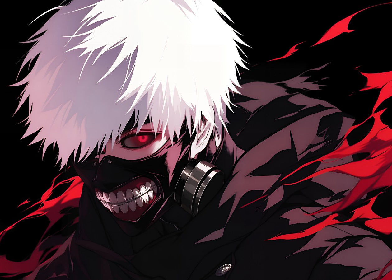 Ken Kaneki battles his inner darkness, a half-ghoul torn between humanity and power, striking fear and awe with every move.