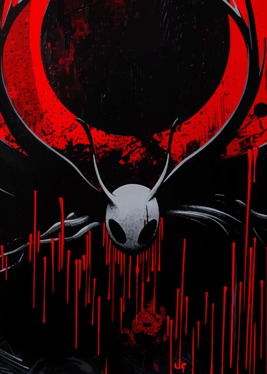 A lone masked warrior stands between crimson flame and blue shadow—calm, deadly, and utterly silent