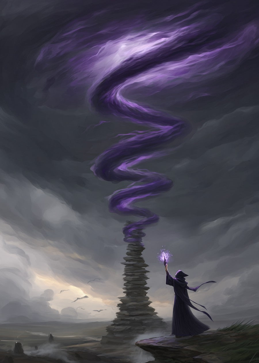 At the edge of the storm-wracked cliffs, the Hollowspire rises — a relic of forgotten magic and fractured time.