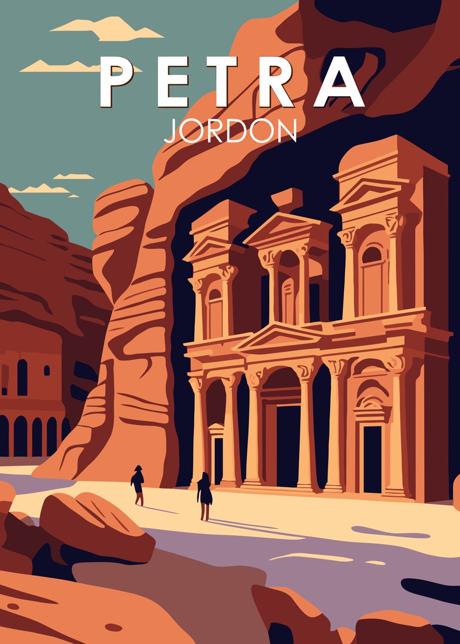 The iconic Al-Khazneh (The Treasury) of Petra, Jordan. The detailed rock-cut architecture.