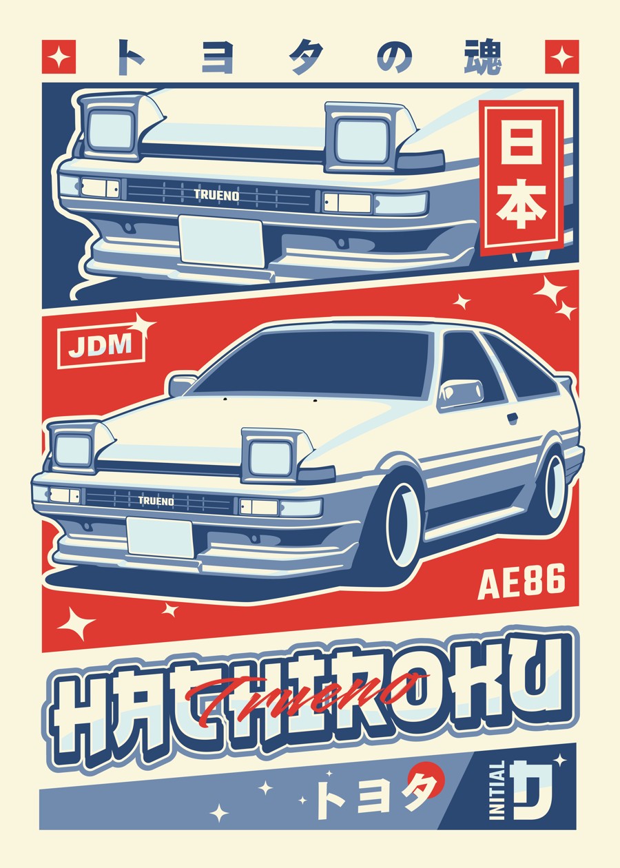 Toyota AE86 Trueno, a legendary 80s drift icon with lightweight design and agile performance, beloved by classic car enthusiasts.