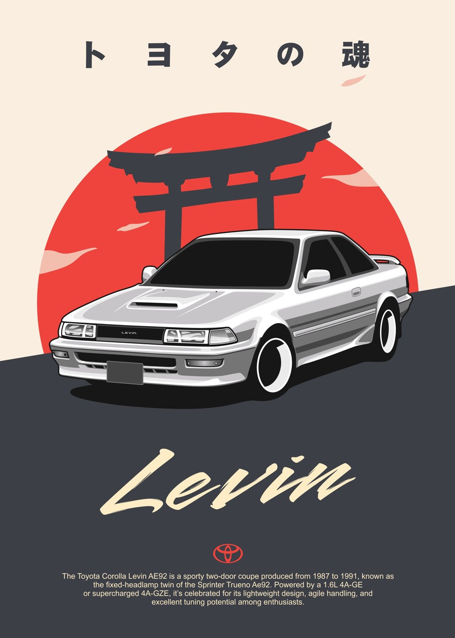 The Toyota Corolla Levin AE92, a legendary Japanese coupe, light and agile, perfect for drifting and a sporty driving experience.