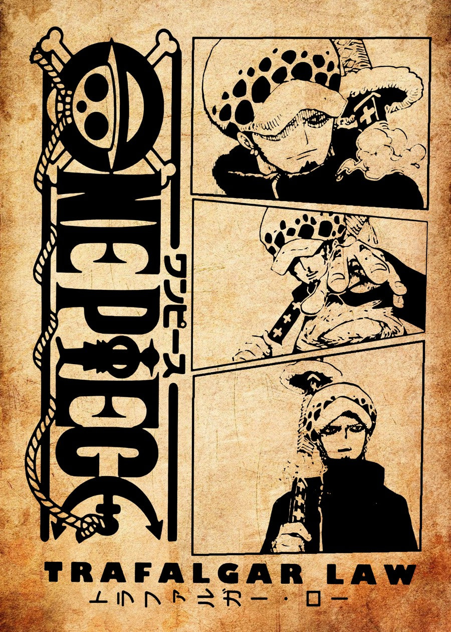 Trafalgar D. Water Law, more commonly known as just Trafalgar Law and by his epithet as the "Surgeon of Death", is a pirate from the North Blue and the captain and doctor of the Heart Pirates. He is one of twelve pirates who are referred to as the "Worst Generation". He became one of the Seven Warlords of the Sea during the timeskip, but his position was revoked for allying with the Straw Hat Pirates. Like many other pirates, Law has dreams of finding the One Piece, while also desiring to know the purpose of the Will of D.
