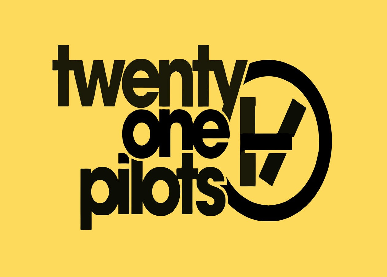 Minimalist version of the Twenty One Pilots logo in deep black, set against a solid yellow background.