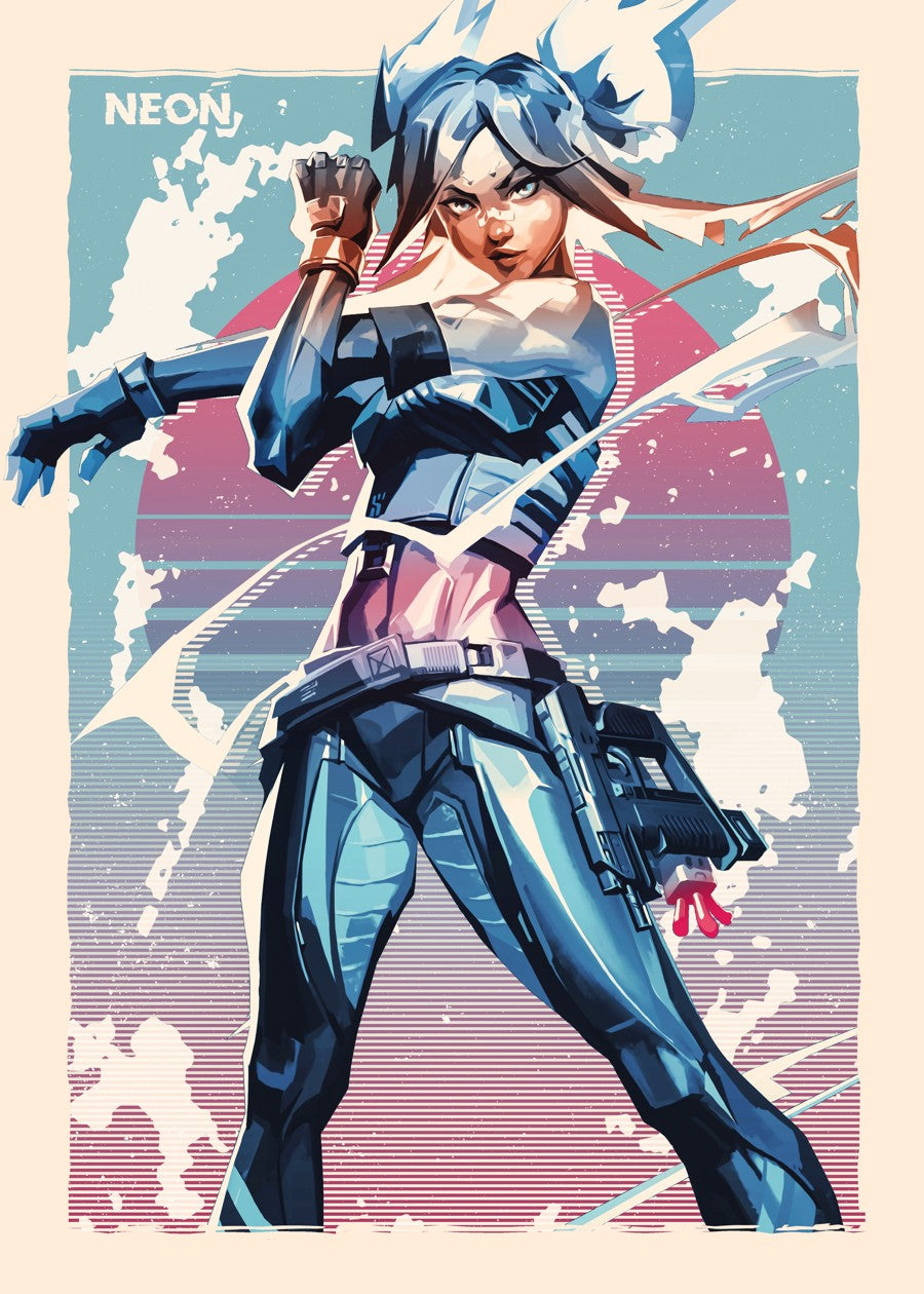 Neon's charged up! This vibrant Valorant art crackles with energy & style. Get ready for a jolt of pure, electrifying action!