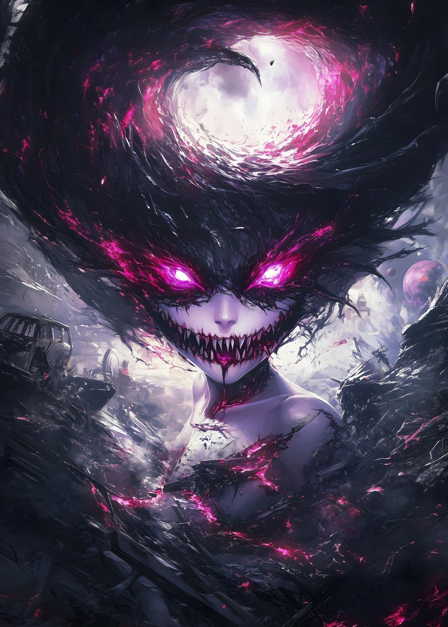A mesmerizing figure emerges from the cosmic void, eyes aglow with mystery.