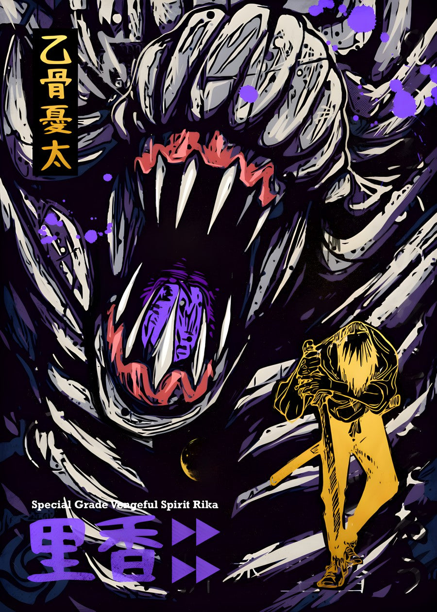 Dark and haunting, this poster features Rika from Jujutsu Kaisen with cursed spirit energy.