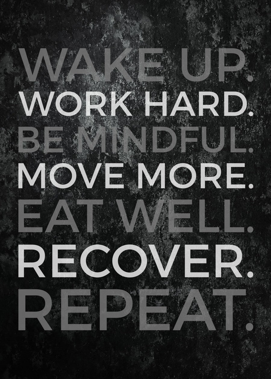 Wake Up Work Hard. Be mindful. move more, eat well, recover, repeat