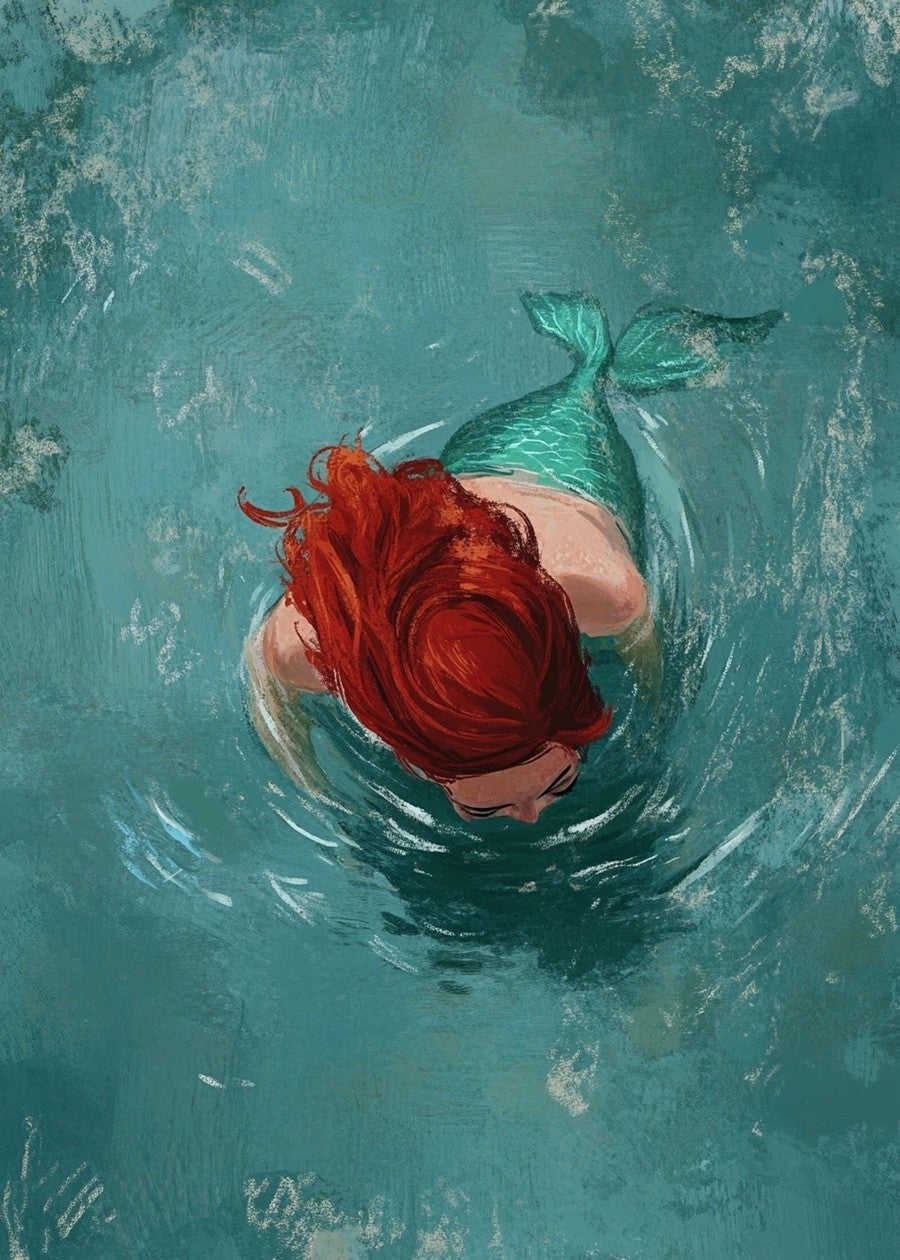 Bathed in soft underwater light, a mermaid floats gently beneath the surface—half dream, half ocean. A tribute to serenity and imagination.