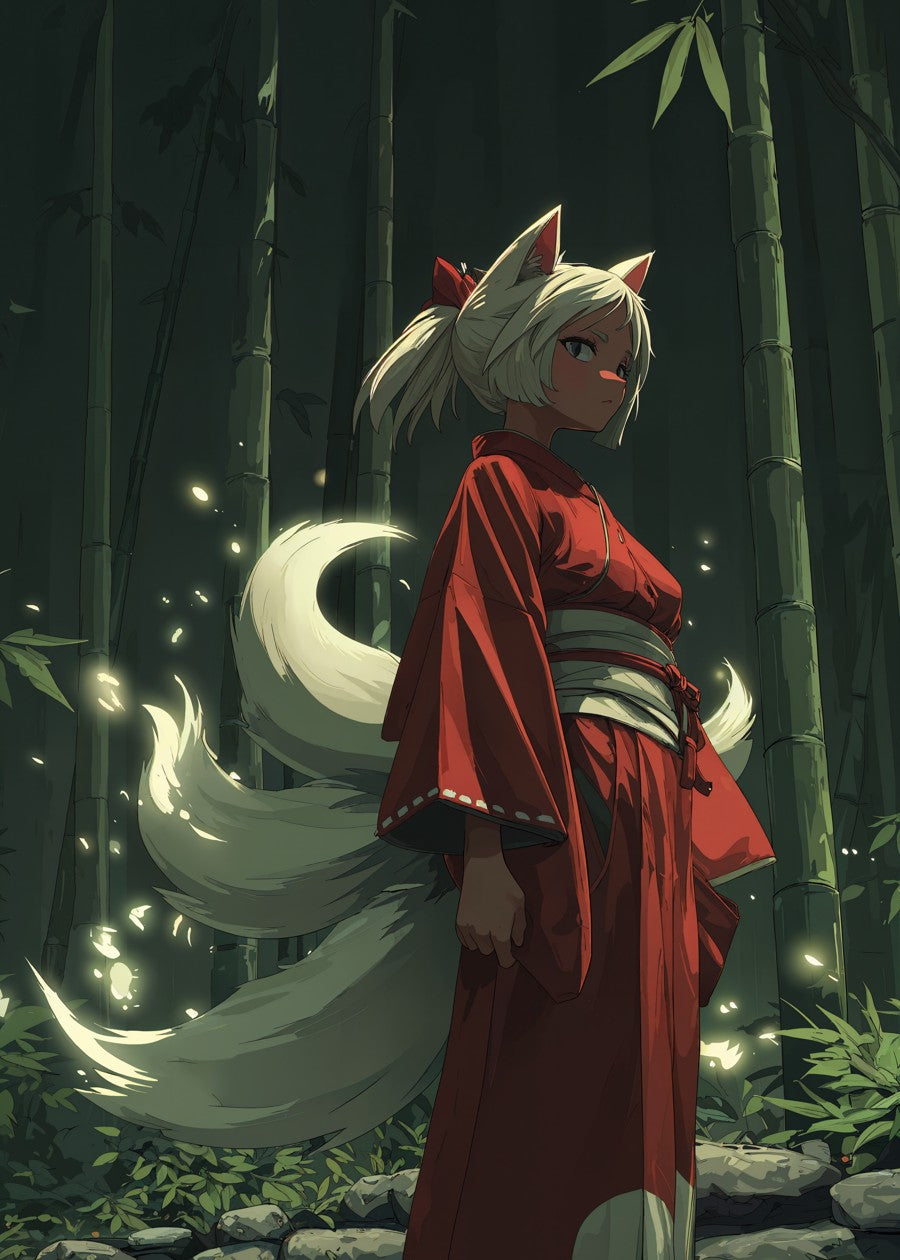In the silence of the bamboo grove, the fox spirit watches. Her nine tails whisper stories of magic, vengeance, and ancient secrets.