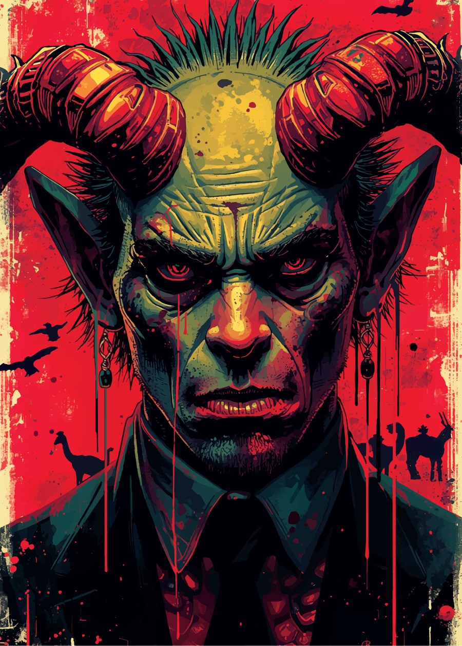 An illustration of a psychedelic monster amidst flashy, blazing colors