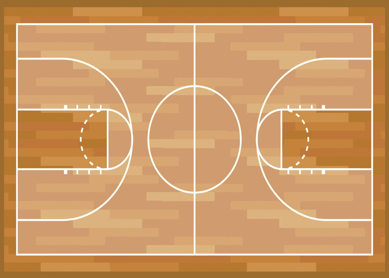 A basketball court illustration with a textured wood pattern and light brown tones.