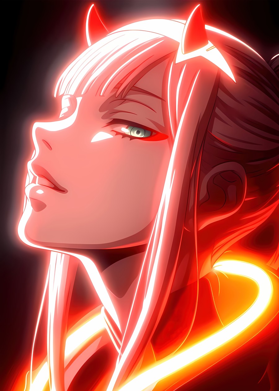 Zero Two glows with her alluring aura, the iconic heroine of Darling in the Franxx